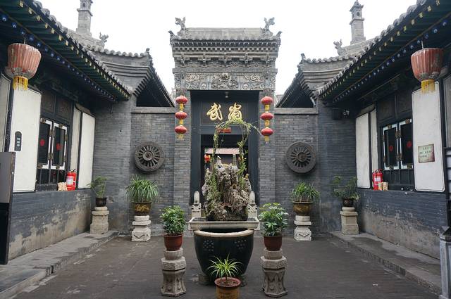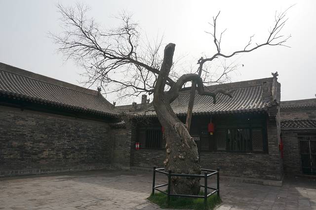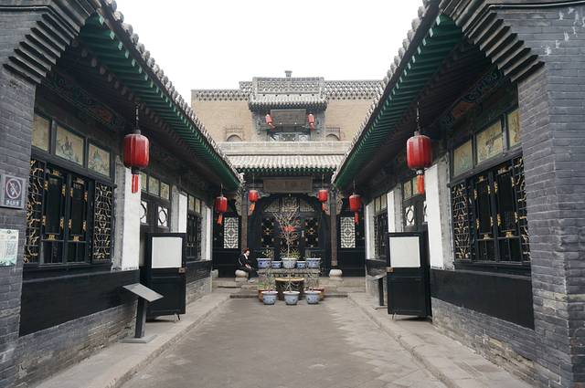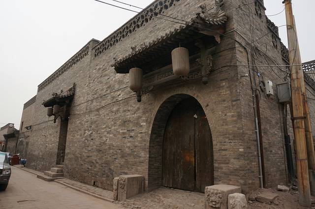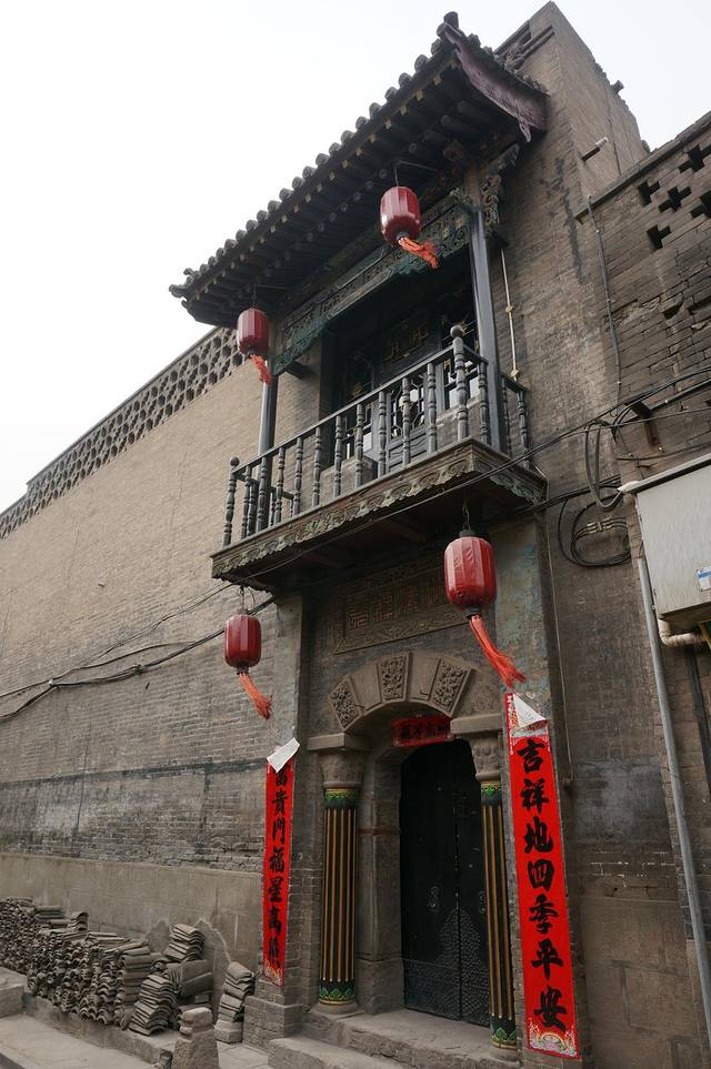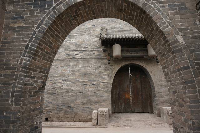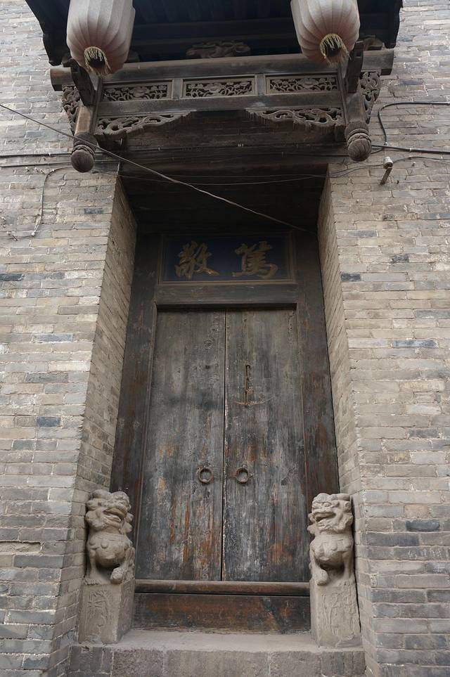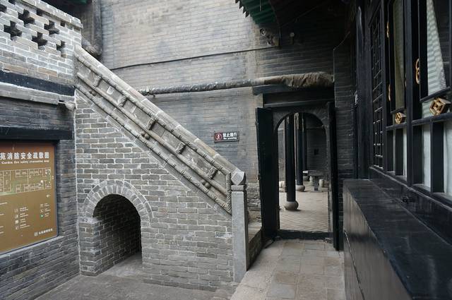平遥民居的院墙都很高,看起来都是有二层的,而且一个个都像是堡垒,包的严严实实,除非开着大门,否则从外面根本看不到里面,估计这里的小偷都得自带爬墙的抓锁