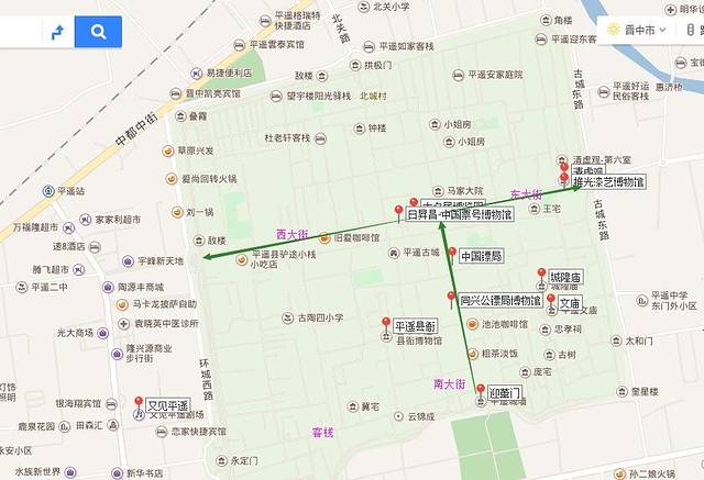 平遥有两个火车站,一个是平遥古城站,也就是动车和高铁站,离古城相对较远,打车大概二十分钟,八公里多,另一个是平遥站,看地图离古城的北门很近,走着就可以到古城,但是特快太慢啦,要开一宿。