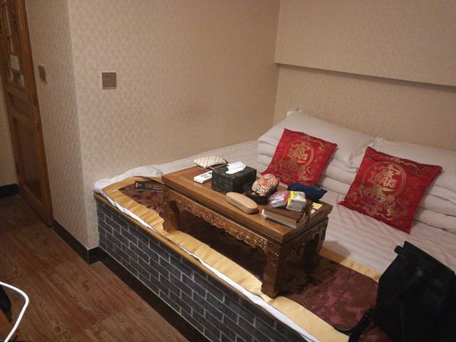 对于住宿环境我还是相当满意的,当时因为是一个人,所以定了一件不是很大的房间,但是价格也是非常便宜的,80一晚,我住了三晚,炕上有电褥子,屋里有空调,所以屋里会很温暖,被褥也都很干净,最喜欢的是那个小炕桌,开着电褥子,坐在炕上,吃着东西,看着人民的名义,惬意的不得了。