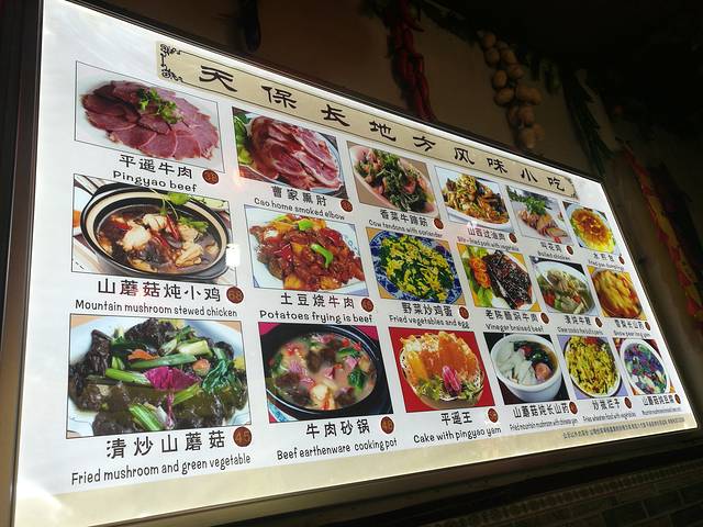 所以,无论如何,我都要帮老板推一推这家店,就是我居然不记得这家店叫什么了!下面有地图,想去吃的自己找一下,不大的门脸,里面好像有写着平遥特色小吃之类的,就在南大街上,从南往北走,没走多远就到了,价格不贵,量都挺大的,老板也很实在。