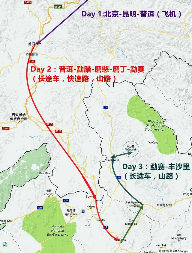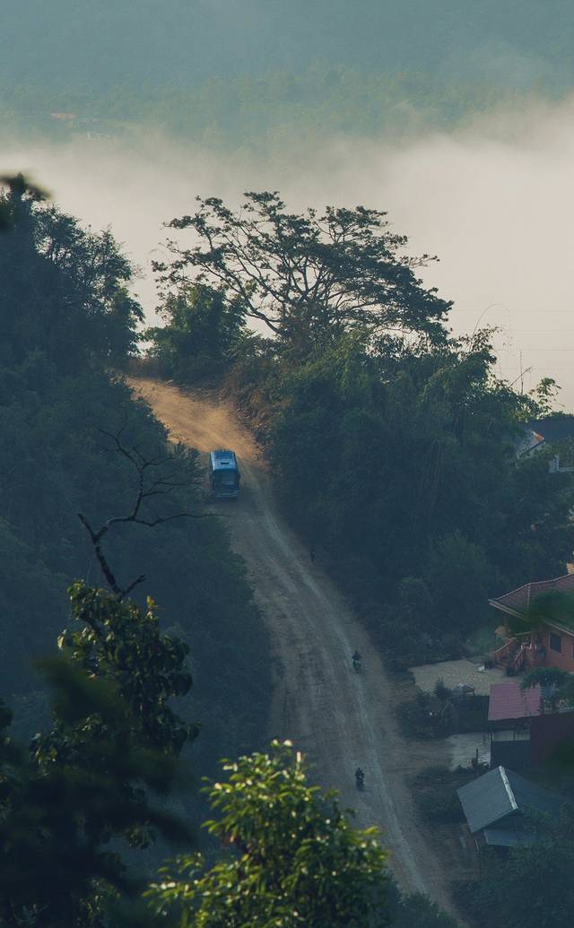 从昆明启程,一路向南,途径普洱,景洪,勐腊,通过磨憨口岸,从磨丁开始进入老挝,来到老挝北部的山城勐赛。如果你运气足够好,在那里,你会等到一辆前往丰沙里的长途车。