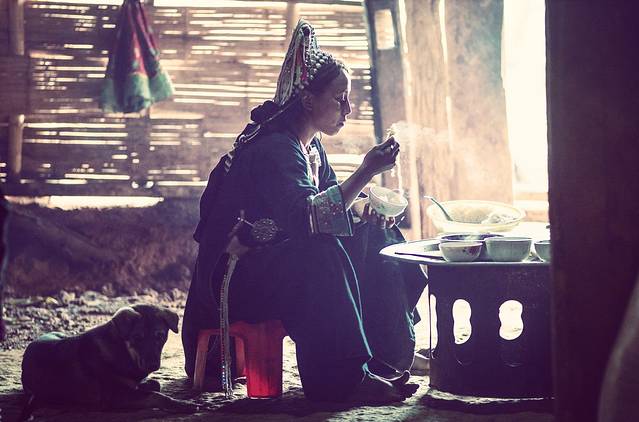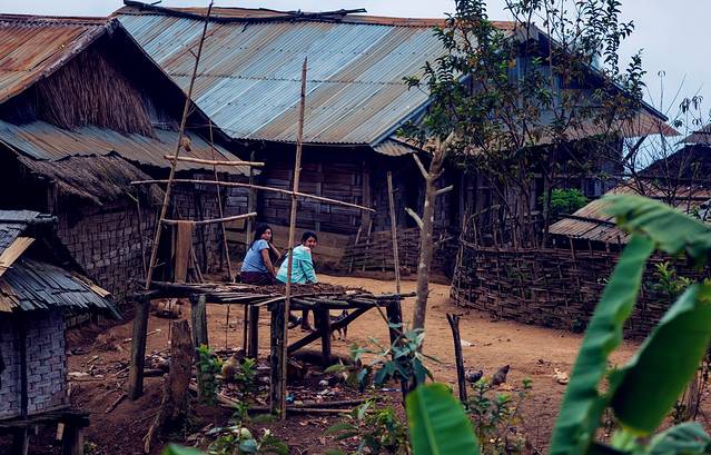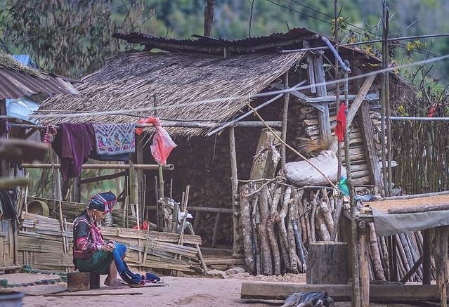 尽管在丰沙里的这个季节,一天中绝大多数时间的天空都万里无云。然而每天清晨,整个大山都被锁在云雾里,一股股阴冷的气息在村中随机荡漾。