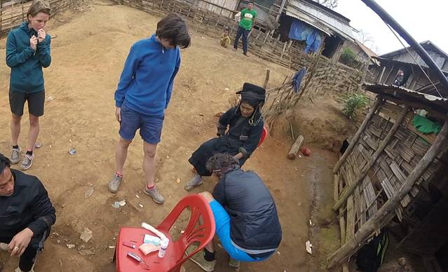 回到村中,两位曾接受过培训的法国姑娘小伙拿出了背包里的医药箱,村里几个受了外伤的村民集中过来,接受了处理,但愿这能有所帮助,这也是我们能为他们所做的全部。