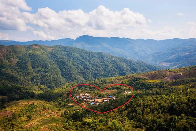 终于,我望见一座小村庄,它位于山谷低处,远看恰似一个心型。莫非因为我的虔诚,于是“唯心主义”世界观又有了新的投影?