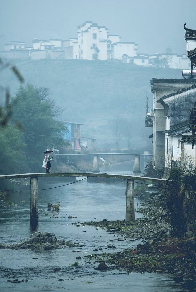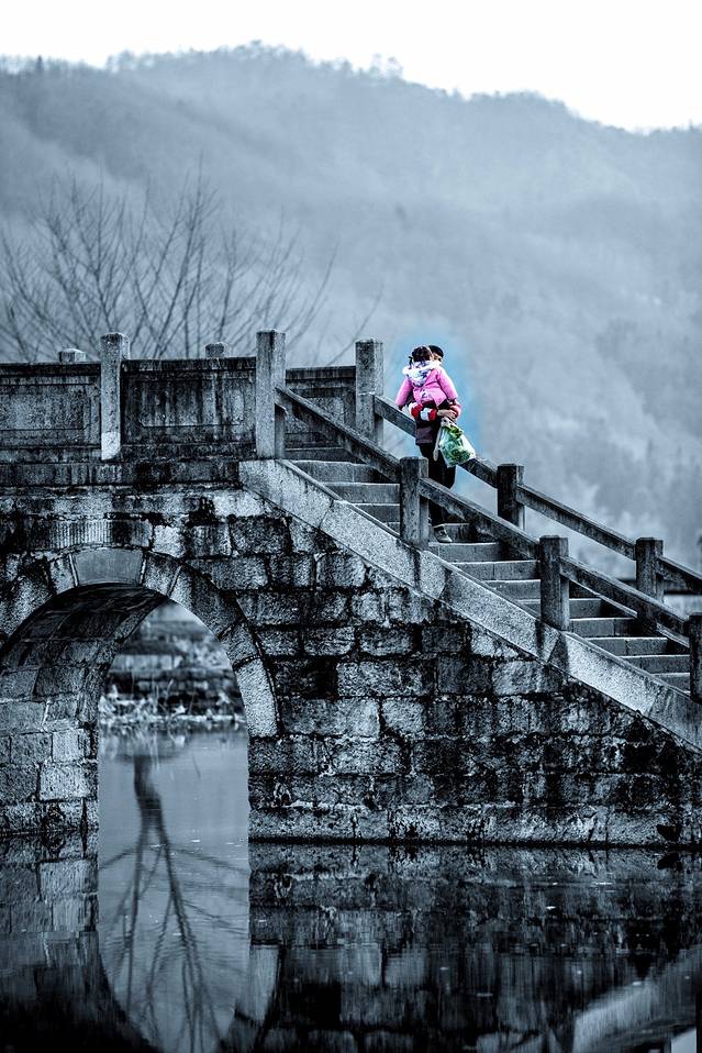 冬天的雨也是寂静的,我以为那只是远山飘来的仙气,而今天过桥的她,身上却加披了一件雨衣。