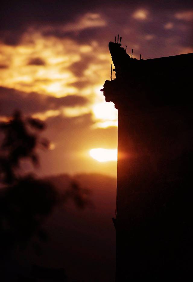 看着它慢慢地收进了天边,把最后的余晖留给了孤傲的飞檐。