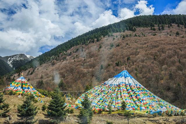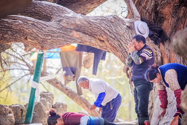 3)行路遇到寺院,玛尼堆,佛塔等宗教设施,必须从左往右绕行,苯教寺院相反应逆时针(很少见);不得跨越法器、火盆,经筒和经轮不得逆转;