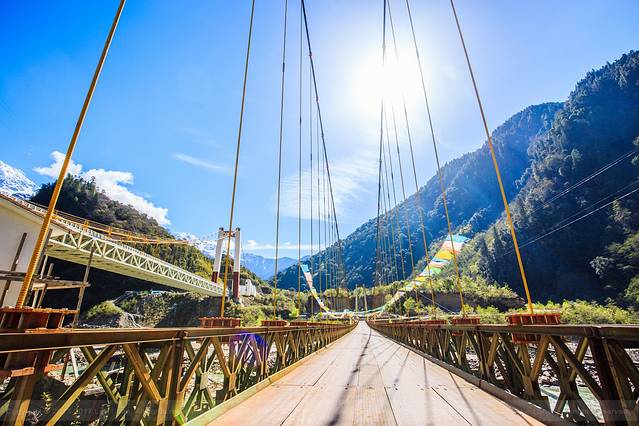 即使是对于我们这次驾驶的新福特撼路者来说也会是不小的一个考验,好在如今318国道排龙到通麦段因隧道和通麦特大桥的贯通已不再是天险了,如此有惊无险的通过这川藏线“最艰险”的道路让我们不禁暗自窃喜,真是来得早不如来得巧。从原来的木桥与现在的钢筋混凝土吊桥相对比,当年的艰辛便可想一二。