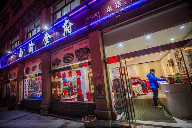 在等候的时间禁不住好奇与老板闲聊了几句,老板本身也是因为专注于川藏自由行而最终选择在此定居,店铺内悬挂的照片和大屏幕滚动播出的视频都是老板拍摄的样片,知道以后着实让我震惊了,仅仅是为了搜罗川藏美景而选择驻扎于此,便于自己能够一年四季更方便的追寻美景的梦想恐怕不是每个人都能做到的。