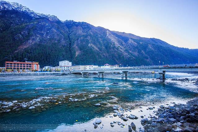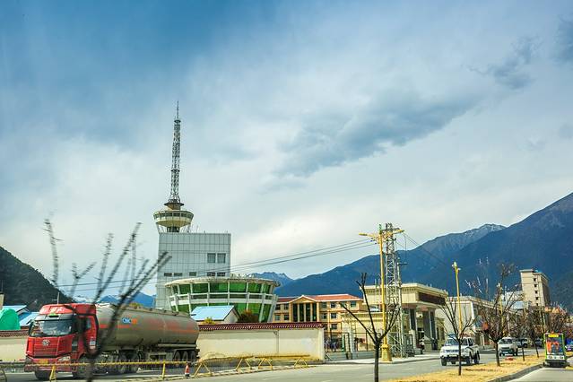 距离桃花村没多远就是远近闻名的林芝了,相较于之前的县市,林芝因为得到了广东的援建而显得相当现代化,为了体现这一点,城市内的主干道也大多被命名为广东大道或广东的地名。这一路也只有在林芝我们第一次看到了高楼房的出现。