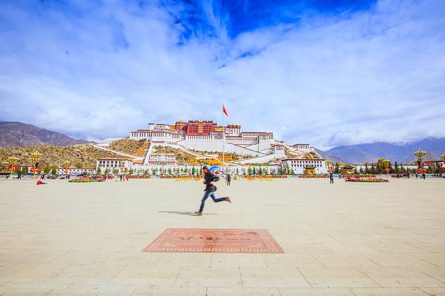 为了留下与布宫与众不同的一张合影,我选择了跑步经过,不过对于直接空降拉萨的朋友我不建议在广场跑步,因为虽然跑的时候也许你并不觉得有任何压力,等晚上吃饭或者睡觉的时候你就会觉得生不如死了,所以对于初到拉萨的朋友我的建议还是多喝水,少做剧烈运动,当时没有高反,不代表你就没有高反,只是每个人的反应和反射弧的长短区别,千万不要大意。