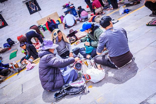 当然为什么说这里是最佳取景点必然有其道理,只是要在这里登上一天,实在有些浪费我到此的缘由,朋友说要不要去大昭寺喝一口正宗的藏式奶茶,体验拉萨人民的日常生活,那当然好,有人带路也省的我再去浪费脚劲,其实要不是因为我们一路自驾而来,单单就拉萨目前的海拔也足以让一个普通人头晕目眩,喘不上气来,所以根本谈不上来去自如,如果有当地的朋友带路的确省心不少。