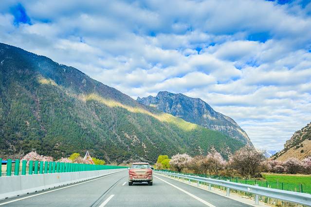 沿途依旧能够看到大片的桃花林,依山傍水,开的有声有色,奈何这次真的是告诉,停车拍照就显得并非那么明智了。