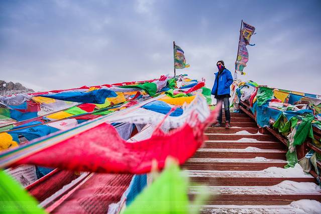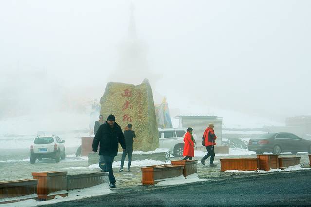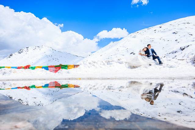 偶遇一堆新人在此拍摄婚纱照,其实现场的温度还是相当低的,加上海拔的因素,要在这里任由摄影师的摆布或者做一些非常规的POSE其实压力还是非常的大的,所以基本新人能做的动作大部分都是相互依靠或搀扶,不过就天气和环境来说的确是任何平原或高山可以比拟的,一生能够来一次感觉还是相当值得的。