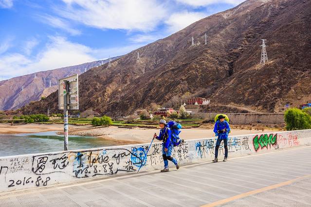 越是临近拉萨,沿途遇到的骑行者,朝拜者的团体越是庞大