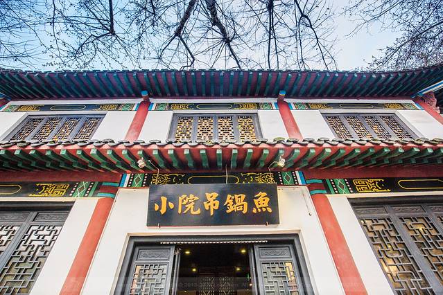 而这里最为出彩的就是这个小院吊锅鱼,环境有些茶社的味道,形式和模式的设计有独到之处,把火锅加一个提手就变身为吊锅,门口摆一个台子放一些各样生的熟的食材吃的氛围蛮好。