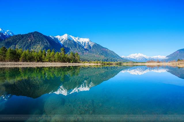 在驶离静好波密的门牌后不久迎面遇到了全程天气最好,也是景色最宜人的古乡湖。