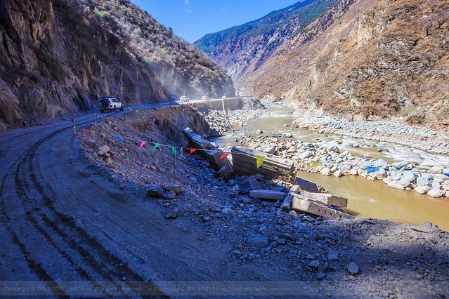 在当地司机的指引下,我们再出来来到旧桥前观摩,几乎所有到此的司机对于通麦天险这段路都是谈路变色,可见这段路的凶险对于过往的驴友有多大的心里阴影,的确稍不留神路边就是万丈悬崖。