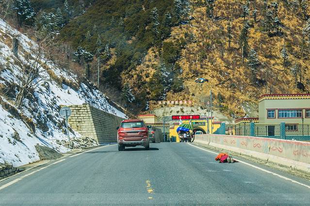 天空的丝丝阴霾丝毫没有影响我们对于旅行的憧憬,如果做过新318国道或川藏线的朋友应该知道,其实现在的国道相较于前几年已经成熟很多,沿途的休息站或各县镇交通,餐饮都相对较发达,所以从上海出发时,在餐饮方面我们只是简单的选择购买了两箱矿泉水备用,就匆匆上路了。