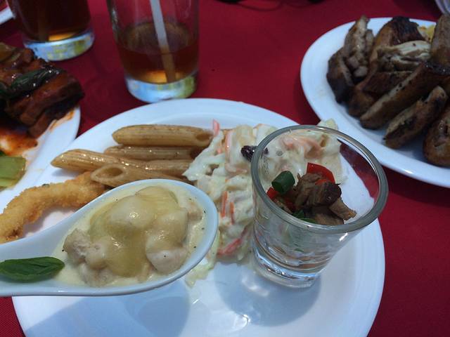 我们是早上看完鲸鲨之后去的,到的时候中午11点多,就在沙滩等自助餐开餐,烤肉的香气一阵阵飘过。中午的自助午餐以西式为主,也有live cooking的烤肉烤螃蟹。头盘、主食、点心,一应俱全。