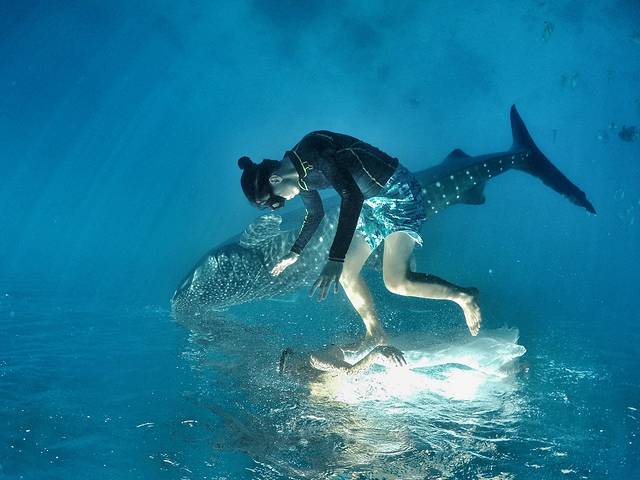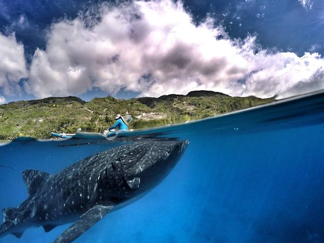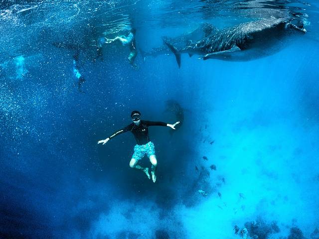 2.由于这里的鲸鲨基本都会浮到水面,所以一般也是浮潜,要注意防晒,但是这里不让涂防晒霜,所以建议穿水母衣(长袖泳衣),不要给鲸鲨喂食。