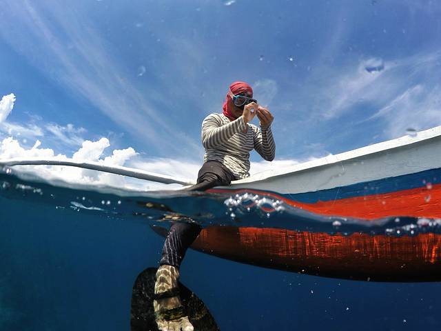潜水中途在船上休息的时候,会有岛上的人划着小船到我们的船上来售卖当地的纪念T恤,约200P一件。潜水教练也很友善,每一潜上来,教练还会提供面包和当地的面包酱给我们补充能量。