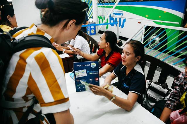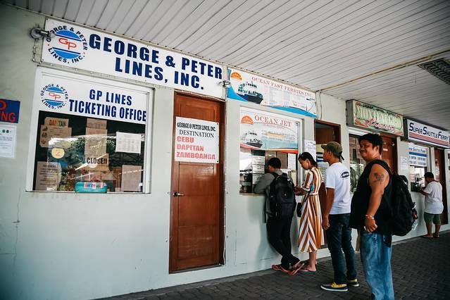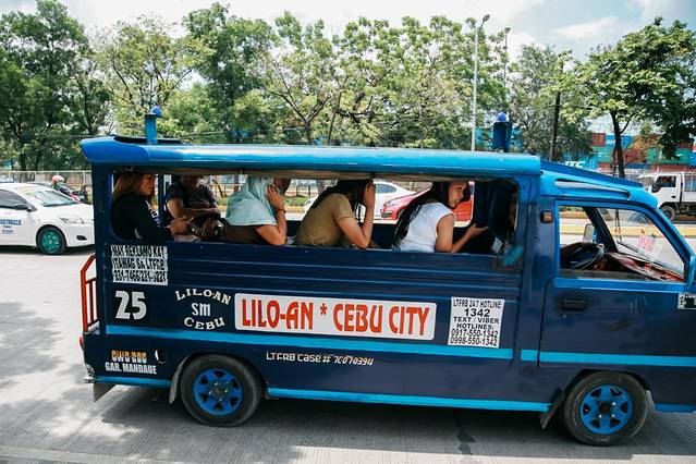 在墨宝购物中心的正对面车站等车,见到车牌子上写到【Bato】或者【Santander】的黄色大巴,立即挥手叫停。上车有售票员,80P/人,下车后坐上一辆突突车20P/人,和司机说前往Liloan Shipping渡船码头,全程大概3-4h