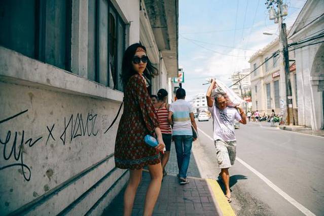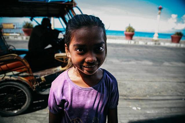 这个小女孩在酒店外一直跟着我们,我们给了她一些比索,她很开心:)