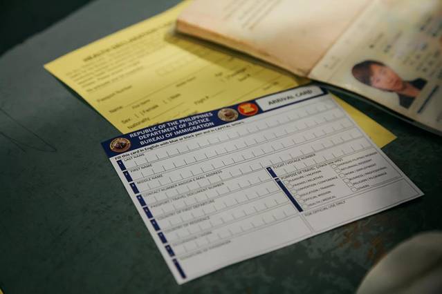 飞机是凌晨的红颜航班,1:45起飞,4:30抵达尼诺·阿基诺/阿奎诺国际机场(Ninoy Aquino International Airport简称NAIA)转机,飞机上空姐会发给你2张表格,一张是黄色的“健康表”;一张是白色的“入境表”。