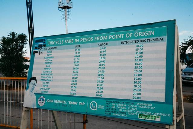 码头外有候车通道,牌子上明确写明了不同交通工具来往不地方的价格,薄荷岛的出租还是很喜欢乱喊价的,所以别着急打车,先看看价格明细吧!