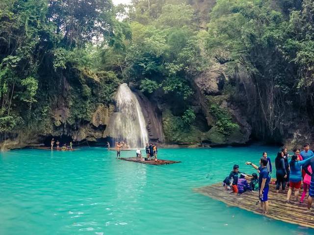 最终到达kawasan瀑布~可以坐小竹排到瀑布下,感受强大水流massage~
