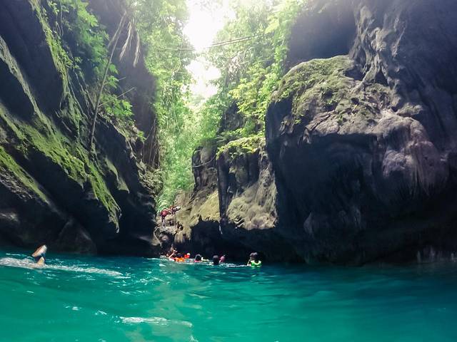 Kawasan是当地比较出名的一条溪流,沿溪流溯源大大小小的瀑布不计其数,几乎全程都在涉水,加上午餐时间大约有5-6小时,溯溪店会提供速干(防晒)衣、头盔和鞋子,只是他们家的鞋子都比较烂,建议穿自己的装备;