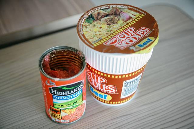 今天的行程大多数都在水上,我们要从薄荷岛回到宿务,然后从宿务飞回广州。我在7-11便利店里发现了这罐玉米牛肉(50P),配上杯面(30P)超级好吃!