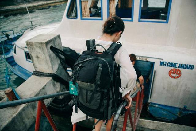 2、检票过后,会有部分船上的工作人员招呼你过去存包,费用不是很便宜,值得注意这个服务不是必须的,如果行李不是很重,建议亲自带上船,可以放在身边空位处;