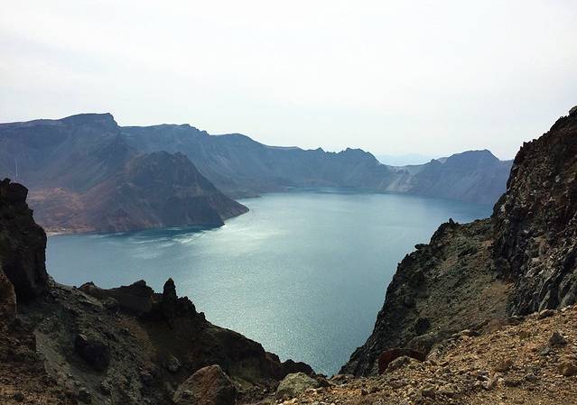 原是火山口,后由泉水、雨水汇集而成了高山湖,由于水中矿物质反射,让天池变成蓝色。