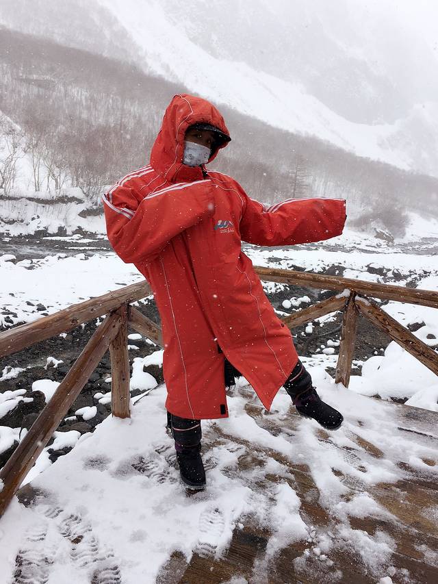 上山的时候,天下起小雨,司机师傅说,别看这是雨,到半山腰就是雪,乖乖的租了大衣,雪地靴,护膝,全副武装以后,怎样看都觉得傻#(笑眼)#(笑眼)