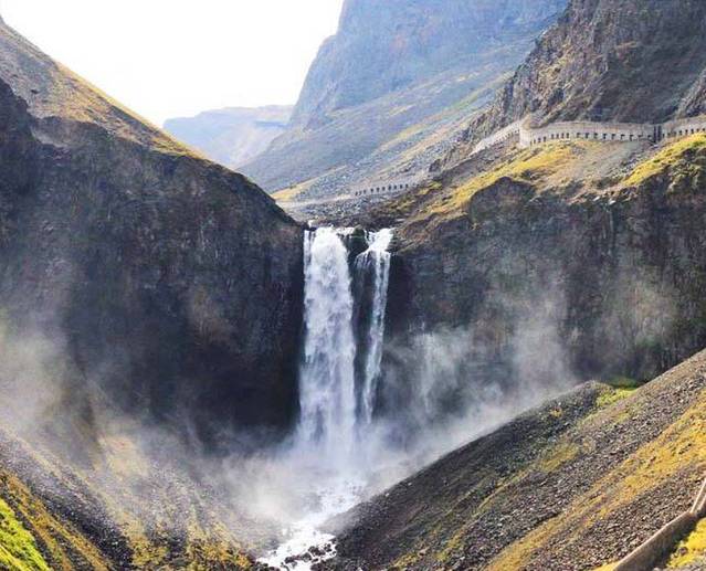 位于北坡,天池没有入水口,只有出水口,即长白瀑布,瀑布下有20多米的深潭。瀑布由天池的缺口流出,遇到悬崖峭壁后湍急而下,飞流直下形成瀑布,注入二道白河,也是松花江的发源地