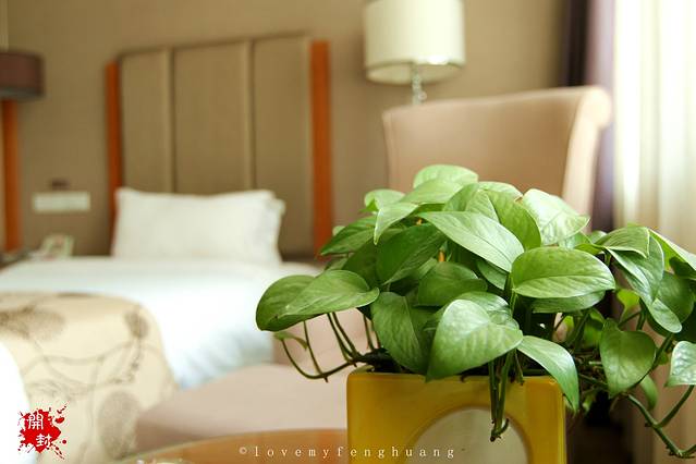 入住的城景双床房,房间内的装潢整洁而典雅,美人榻旁的茶几还有绿色植物点缀,净化了室内的空气的同时也带给人春的感觉,生机勃勃。
