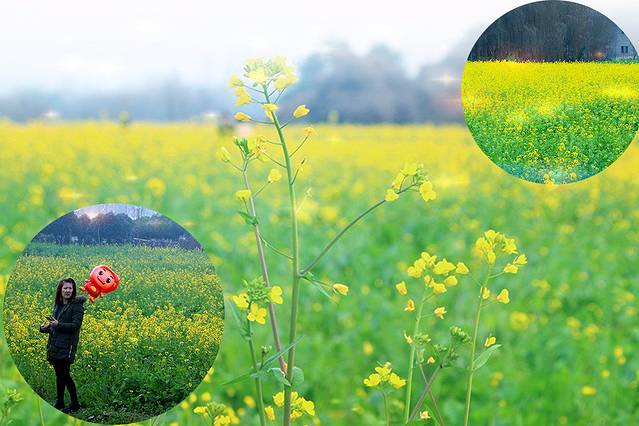 这里有成片的油菜花,还有较为宽阔的地面,所以,就成了放风筝,铺张地毯坐着玩耍的理想之地。