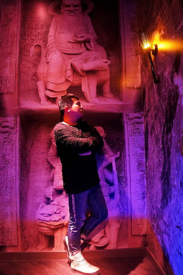沿着“坑”往下走廊到达二层,第一站就是“影视明星区”,陈列了比如“奥黛丽•赫本”、“张国荣”、“张晋”(蔡少芬的老公)、李小龙等明星……种类不算多,实话说,就仿真度来说,也是“杜莎夫人”授权的原装血统,纵然有些不算特别逼真,但是相对很多山寨来说,那是强多了。