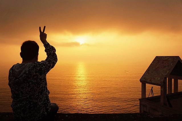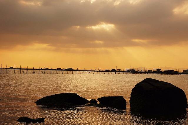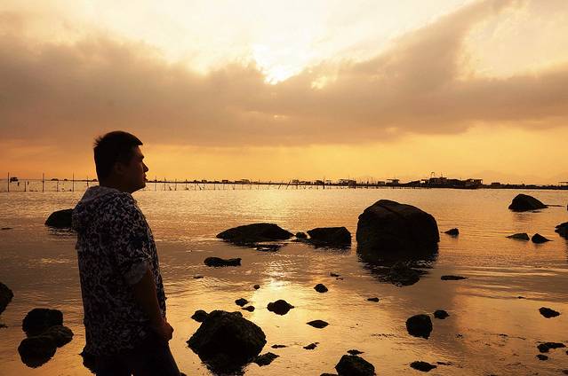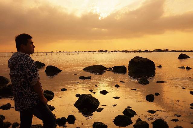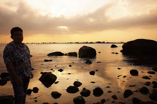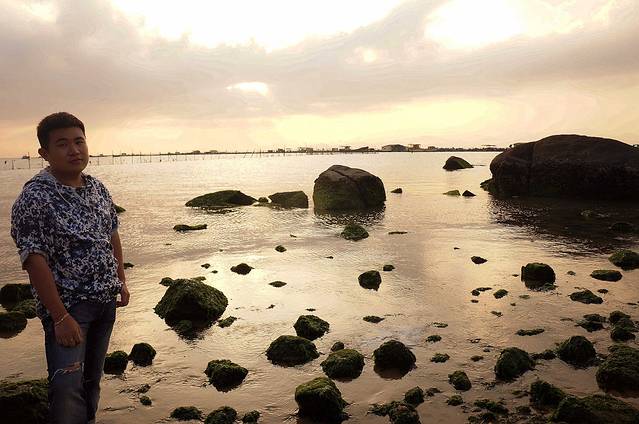 吃完饭后再次回到别墅,队员们提议是去大角湾,之前,我们攻略提到,对于“大角湾”来说,最佳的时间是早上九点左右,那时候的浪最高可到三米,而且别墅的老板告知我们,在“大角湾”旁边都有免费的“沙滩”和“海”,根本不需要花这个☞冤枉钱(当然价格不贵,如果团体票是☞17元,可团购☞19元,现场买20元)。因为是下午四点左右,我关心的是今晚的拍摄日落,所以对于“大角湾”确实当时不是太在意,只是觉得既然到了海边,时间尚早,在海边溜达样一下,考察一下地势。一心还是想去捞日落滴pp。在没有进大角湾,在旁边溜达了一下,直接往☞牛塘山文化览胜景区出发。