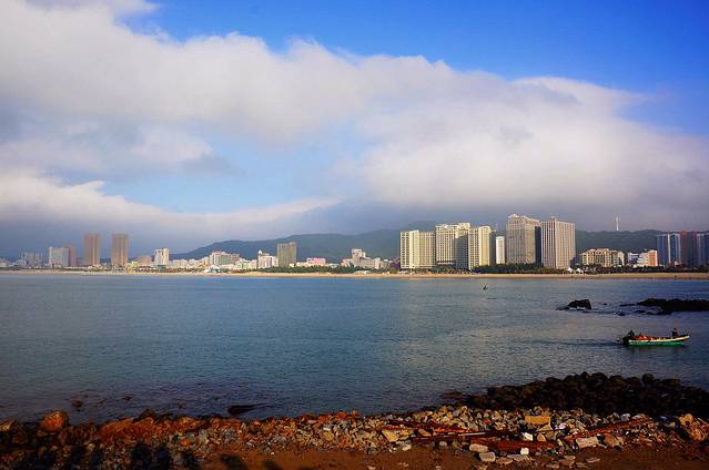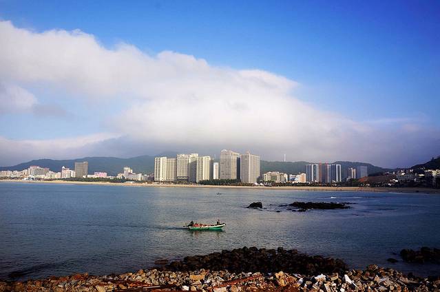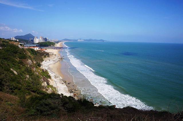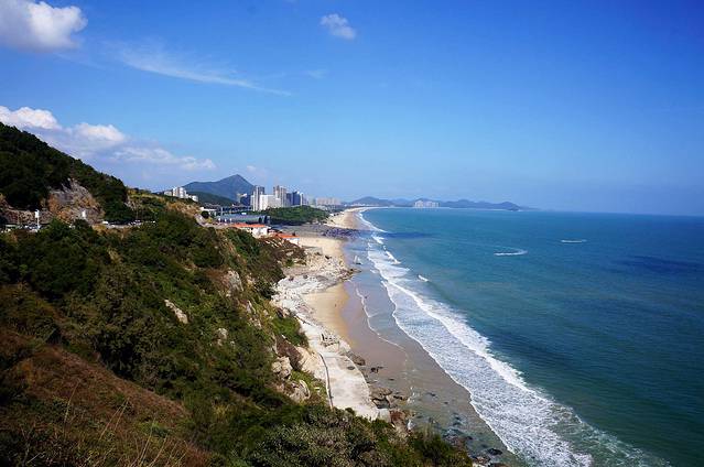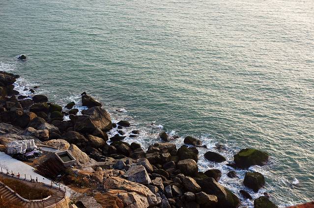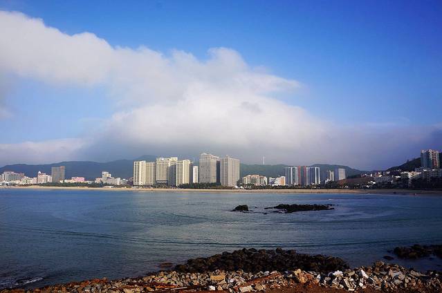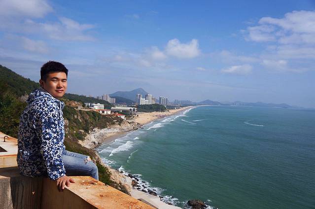晴空万里的天气再次来到“东方银滩”与早上简直是不一样的两种景色,站在这里远眺海岸线上的“十里银滩”很是有气势,蓝天、大海、沙滩一切都是那样浑然天成;从这里可以直接下到海岸边,听听海浪拍打岩石,一切都是那样随心所欲。