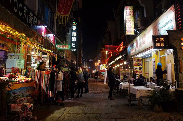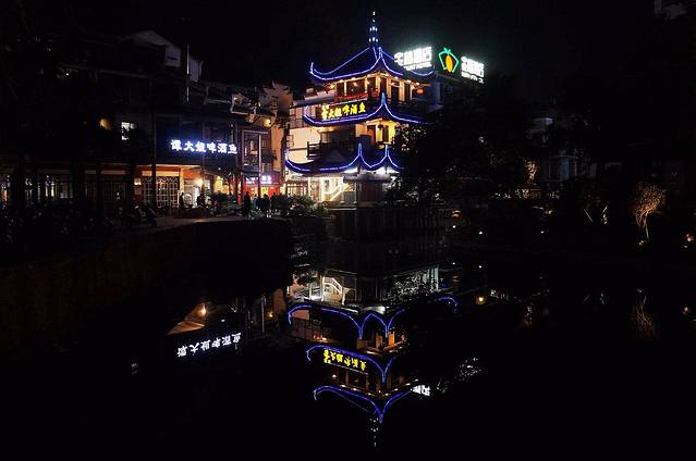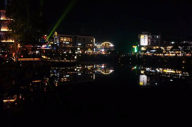 关于阳溯西街:出行的时间是在春节,即使晚上抵达西街,也是人山人海。可能是还没到的时候就被说和“丽江”很相识,这样的印象太深入人心,然后真正到达目的地后,差别感觉还是蛮大。这里个人觉得更像是重庆的“北城天街”与“磁器口”混搭。在西街入口的商场点评,整个就是“北城天街”的翻版。围绕西街的这条河,倒影这岸上的一草一木,这个景色挺漂亮。