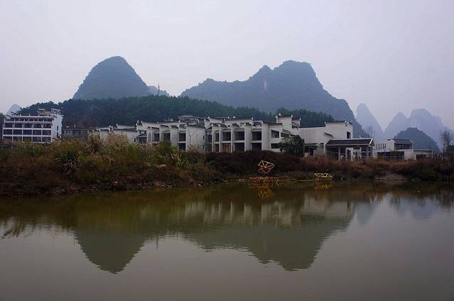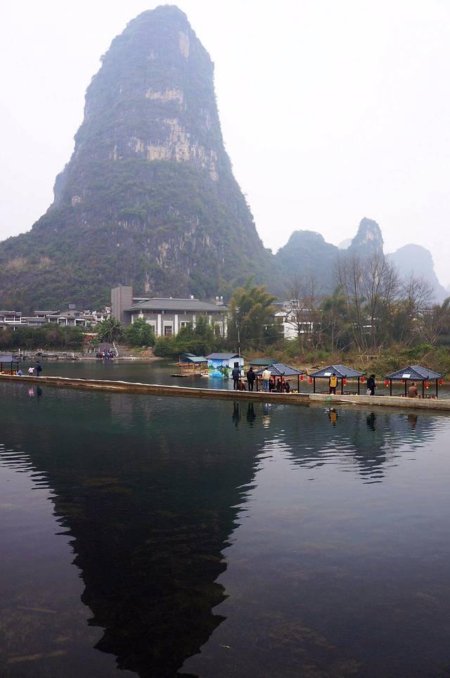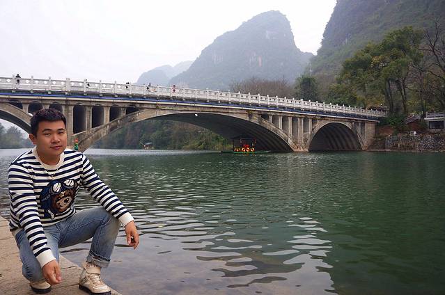 在阳溯,徒步有两条线,一条是沿着“遇龙河”,另外一条则是“漓江”,因为只有一天时间待着阳溯,我们选择了,“漓江”。但是,又不想错过“遇龙河”的精华部分,所以我们包车到了“遇龙河”摄影最漂亮的“工农桥”,可惜坑爹的天气,很影响摄影效果,不过呈现的倒影,不难看出天气好的时候这样是多么很好的画面。(PS:我们先是包车到工农桥,再去丽江泛舟的游客中心,路线比较长,我们包车是400,但是我们八个人,所以下来一个人分摊50很便宜。)