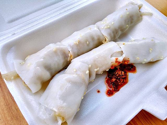 特别介绍下☞“猪肠碌”绝对是广东阳江著名的传统小吃,当地招牌特色小食,也是属于☞粤菜系。因猪肠碌外形呈圆条形,貌似猪肠,因此取名猪肠碌。猪肠碌与粉卷相似,但味道差别甚大,传统的猪肠碌里的馅是由豆芽、炒河粉做成,以整张的河粉作皮来包裹,撒上白芝麻,淋些肉香汁,味道咸中带香,十分美味。(蘸料可以有当地辣椒或是油辣子,个人感觉当地小吃搭配四川滴油辣子更美好)。“海胆饭”其实就是☞鸡蛋炒饭+海胆,如果喜欢这个味道的值得拥有,不喜欢的吃了会满嘴“海胆味儿”难受。