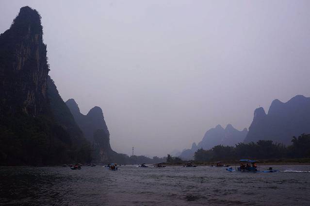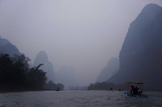 俗话说“桂林山水甲天下”,大家却都知道桂林的精华部分绝对是在☞“阳溯”,阳溯西街并不值得期待,但“遇龙河”与“漓江”沿途的景色,美不胜收。或许是在海陵岛的天气太好,在阳溯就没这样好的“人品”,关键不光是没有阳光,还起了雾霾(就算下雨也好啊,至少来个烟雨画风)