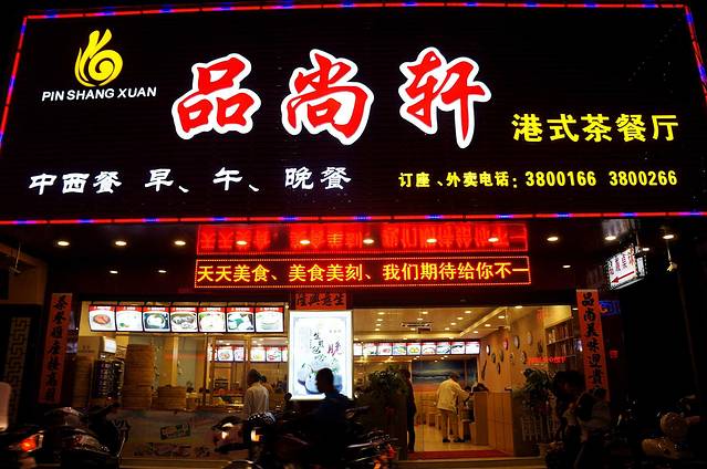 “品尚轩”★★★★,在广东早点必须是吃点心。在“一夜埕老街”算是规模相对大一点的港式茶餐厅,整个店面环境到装修算上档次一点(当然并不是多高大上的)。卫生方面很是跟得上准备了开水先用水洗碗筷。点心方面非常推荐:“烧麦”和北方烧麦不一样,北方主要是多糯米,这里却是实实在在的全肉为馅料;“虾皇饺”味鲜绝对是关键,夹开薄皮儿,如图所示,硕大的虾仁;“凤爪”软、糯、弹非常入味儿;“桂花椰汁儿糕”没有到很出彩,但是不是特别甜,早上吃还是可以,桂花的香味略淡了一点。(总得来说值得一试,关键性价比高,每个点心都是现蒸,春节期间加100分之20的服务费,平常是没有服务费滴)