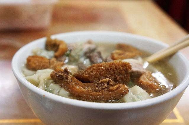 关于海陵岛的特色美食店,地方都蛮集中,都扎堆在“一夜埕老街”。“冰室云吞”★★★★,“一夜埕老街”里的一家老店,如图所示,不管早晚,店里和外卖都排满队的“苍蝇店”。环境确实不敢恭维,服务简直不敢沟通。提到味道,确实不得不佩服,汤头简直太鲜美,高汤熬制,七元一碗的云吞,自带“内容”:猪肝、肉丝、蚵仔。可加猪肚,等……猪肚卤制过,肉质Q弹化渣,云吞是自带葱花的馅料。(虽然我不吃葱,但是我真是吃完了一碗)。