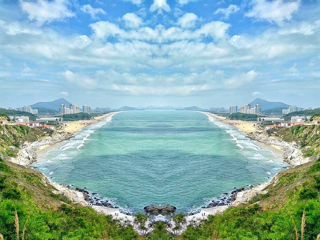 关于大角湾,单独提出来说一下,这个地方属于政府圈地起来收费,如果是去了“十里长滩”估计就不会再想进去,而且沿着大角湾往它的左手边,其实海域都是一样,而且也是免费。(当然执意要进去的也可以买票游玩,价格不贵直接买是20大洋,可用团购。)