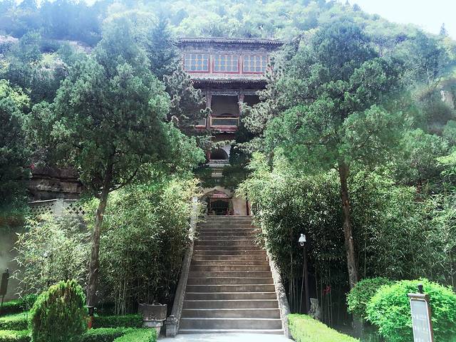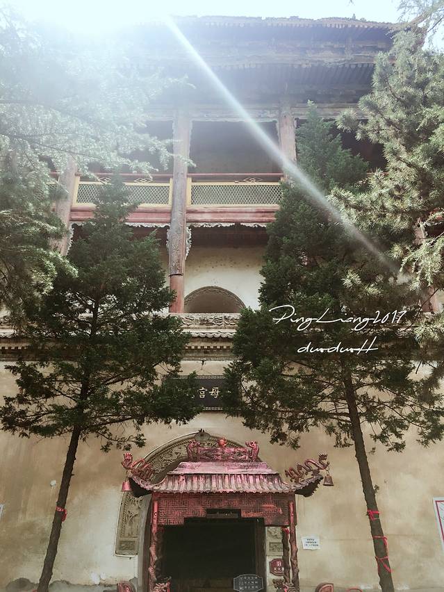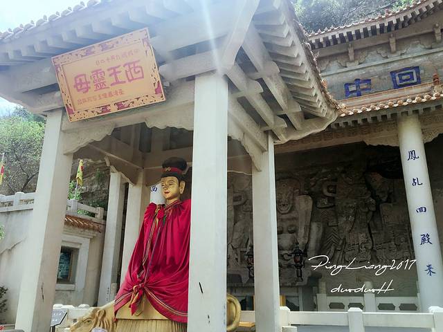 王母宫这边有两个景点,一个是小山底下的王母宫石窟,地方不大,五分钟就转完了。主要就是一个山洞,里面有王母像,整个石窟只有一间也不大,高度大约三层楼,只能从一层进去瞻仰一下,楼上不让上的,因为是木质结构,估计年代久了怕木头松动所以保护起来不让去。